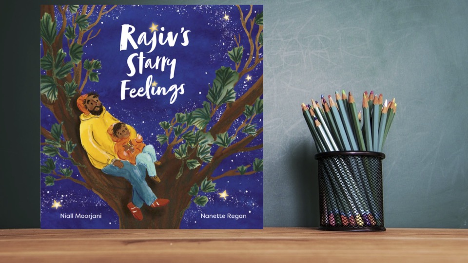 Next comes a title from Lantana Publishing, Rajiv’s Starry Feelings, written by Niall Moorjani and illustrated by Nanette Regan. Young Rajiv doesn’t understand why he has so many feelings, or why some of them are so strong. Then his dad takes Rajiv outside into the night, and together they climb to the top of a tall tree. There his dad guides him to visualize his emotions in the dot-to-dot constellations of stars—and shares the roots of his own anger over people being forced from their homes by war—just like his grandparents in India. Rajiv’s dad’s gentle guidance gives this tale real-world power to help young people embrace their own emotions, and the small and large reasons behind them.